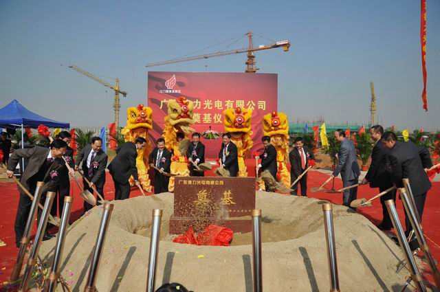 各位領導為廣東德力光電有限公司外延片、芯片生產(chǎn)項目共同奠基。
